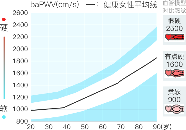 浅蓝色区域为同年龄段动脉硬度偏高